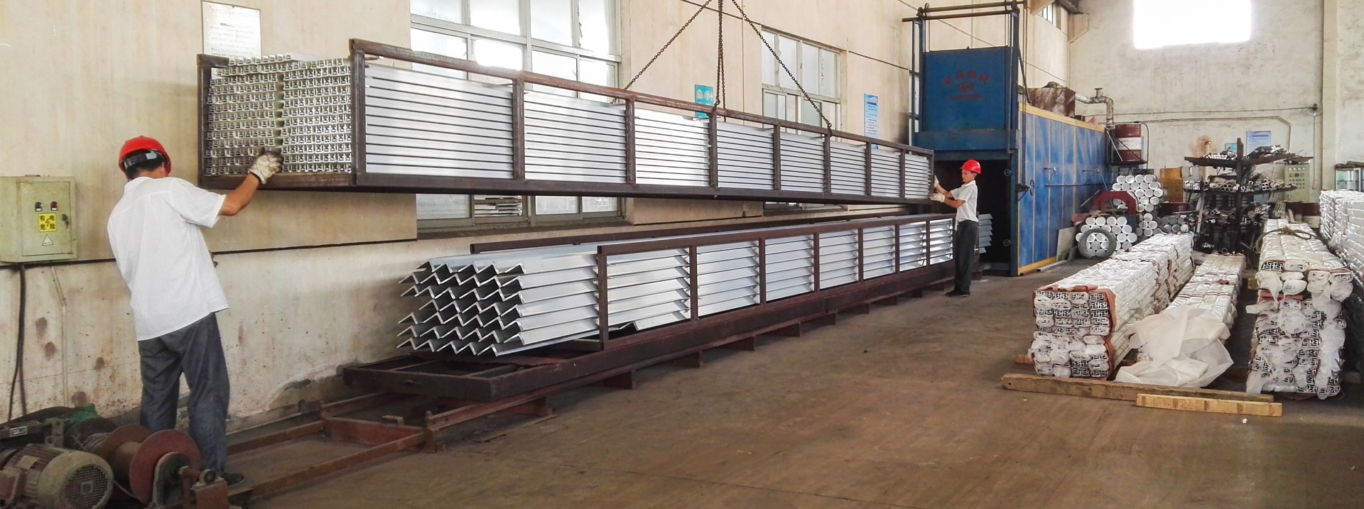 專業(yè)生產(chǎn)多種鋁合金型材及制品的企業(yè),已有二十多年的經(jīng)驗和歷史。現(xiàn)有鋁型材擠壓設(shè)備四套,分別為1800T、1000T、630T、600T擠壓生產(chǎn)配套設(shè)備有10m長不銹拋丸機。6m鋁型材表面拋光機,4.5m普拉迪鋁材加工中心,多臺高精度自動切割機,雙頭轉(zhuǎn)向切割機,備有12m長時效爐。